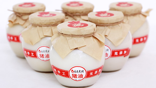 肥膘慢熬细煮,收进玻璃罐,包装精致,用猪油烙饼酥软,炒菜喷香,风味十足。