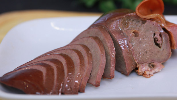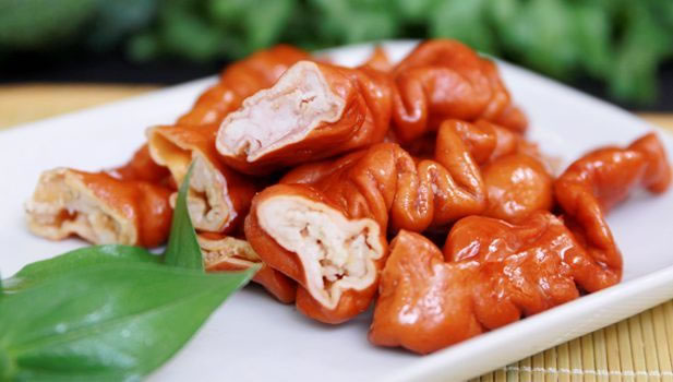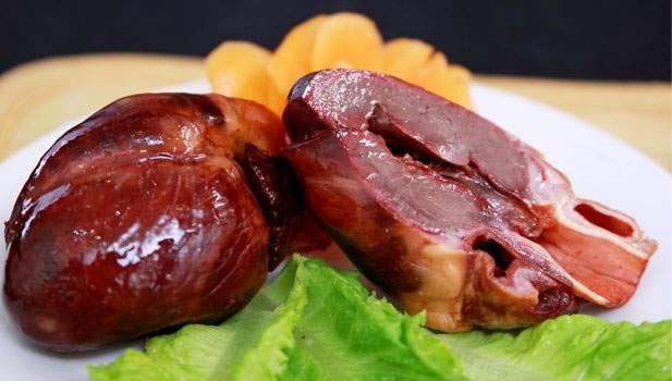 猪肝卤熟后,细致紧实,口感细腻,无香精,老人小孩可放心食用,含铁丰富是补血佳品。